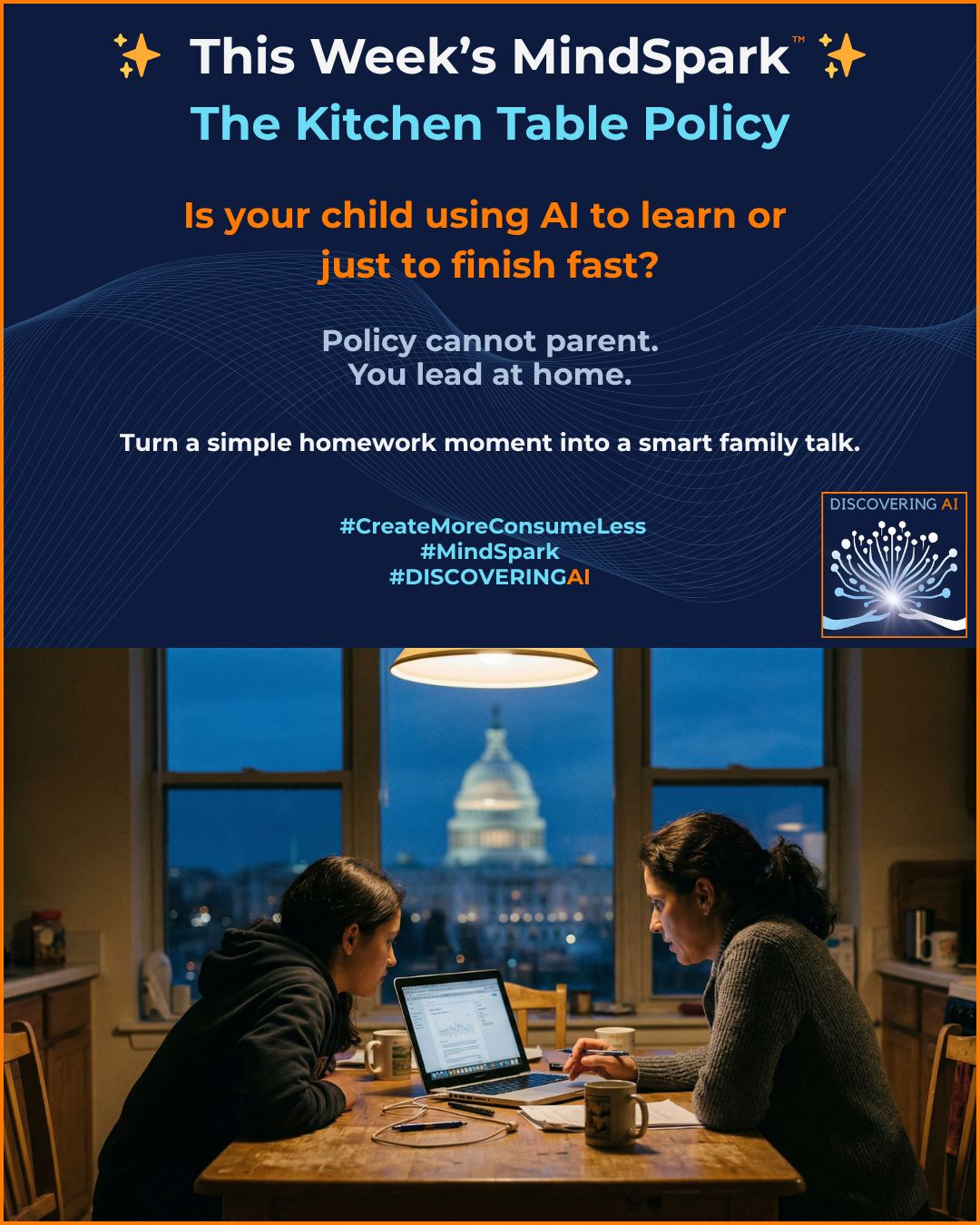 AI is now part of national talks and school decisions. You can see that in the image. At the same time, no policy replaces what happens in your home.